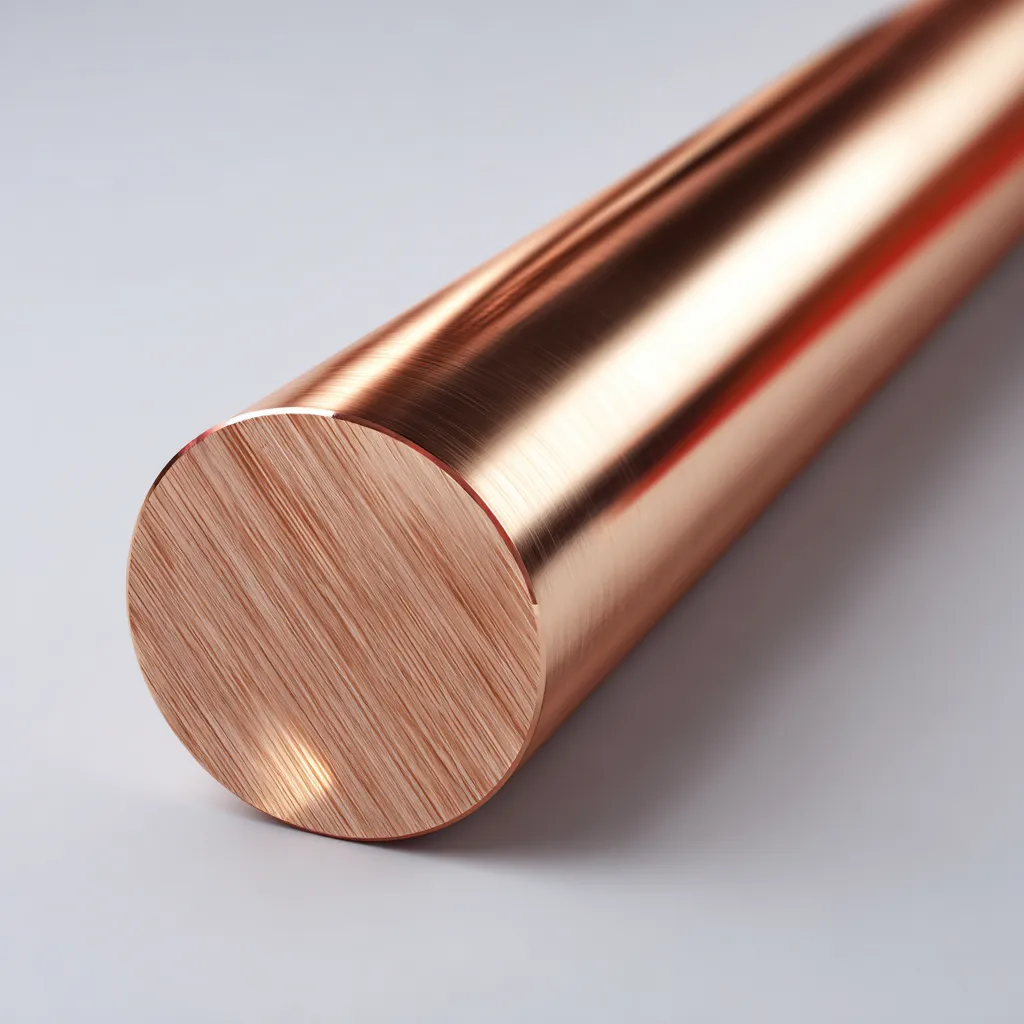- Barras redondas — Diámetros desde 1/4" hasta 6" y mayores. Para busbars circulares, ejes conductores y maquinado de piezas.